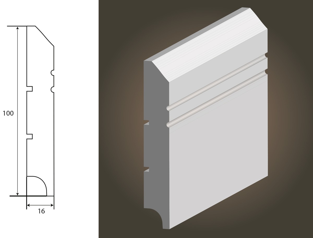 Listwa przypodłogowa biała MDF, Nova 45 PLUS (16x100mm) - Lagrus - Wilgocioodporna