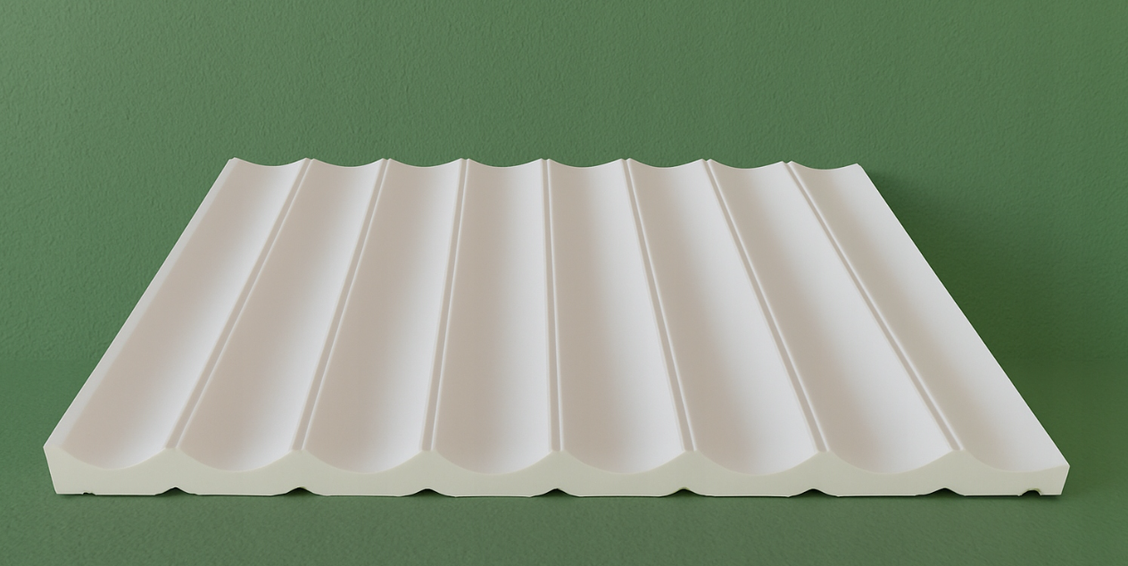 Panel ścienny 3D W109 Valley ORAC DECOR to wyjątkowy element sztukaterii, który wnosi do wnętrz nowoczesny charakter i niebanalny efekt wizualny. Inspiracją dla jego formy były geometryczne kształty spotykane w architekturze współczesnej. Połączone półkola tworzą przestrzenną, trójwymiarową strukturę, która odmienia wygląd każdej ściany.